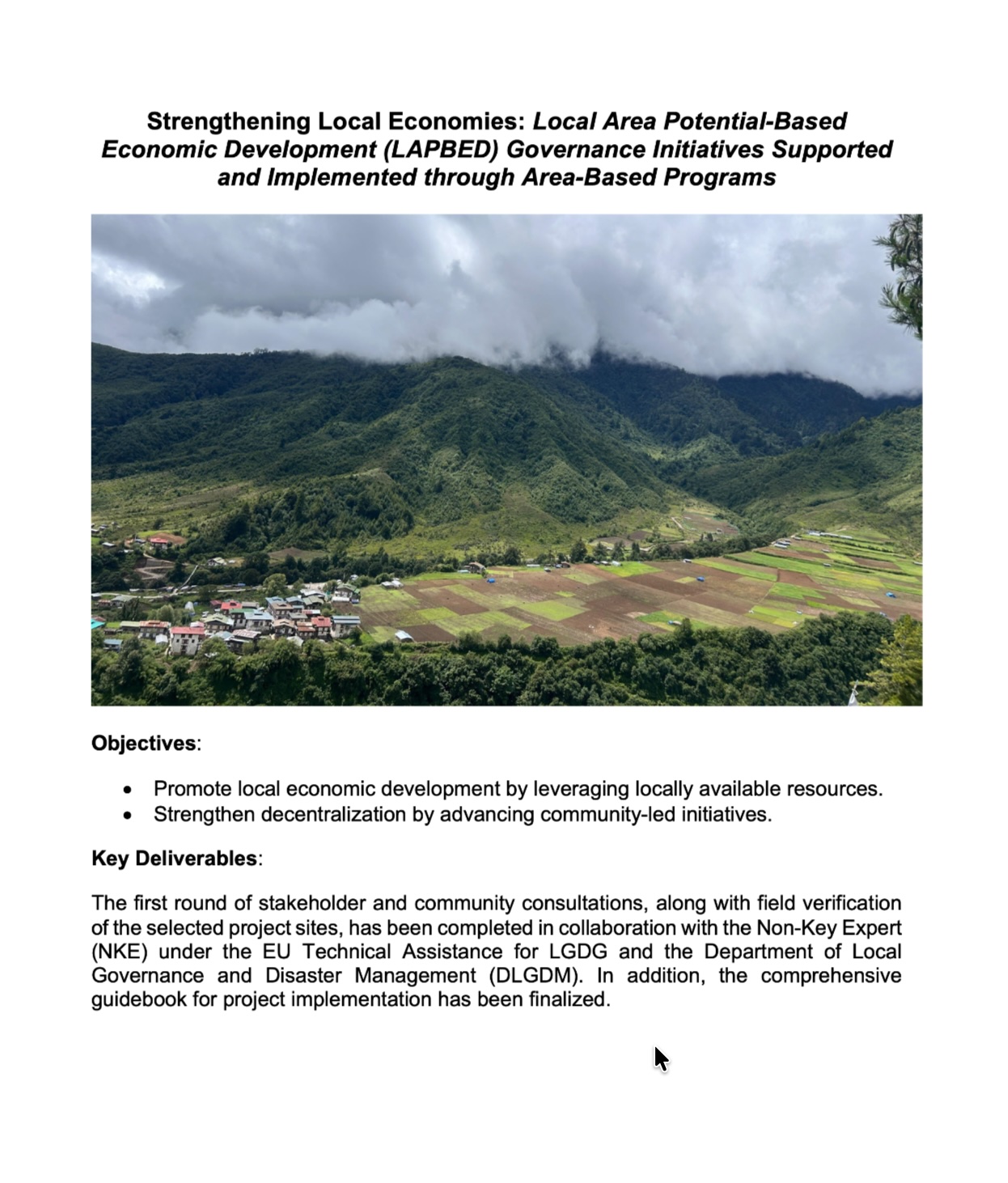 o   Performance Based Climate Resilience Grants to Local Governments: 100 Gewogs supported in the last project ‘Capacity Development for Local Governments and Fiscal Decentralization’ (MIP 2014-2020. Target to scale to 205 Local Governments.